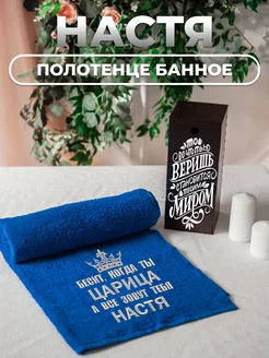 Именное махровое полотенце 70х140 с вышивкой Настя