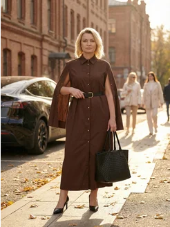 Платье коричневое повседневное вечернее офисное кейп
