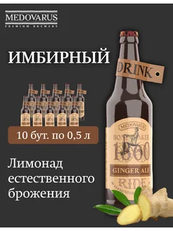 Лимонад RIDE "GINGER ALE" Имбирный 10бут по 0,5л