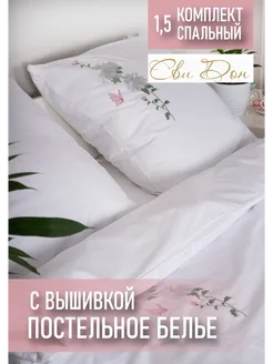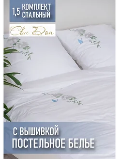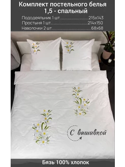 Комплект постельное белье 1,5 бязь белое с вышивкой
