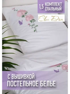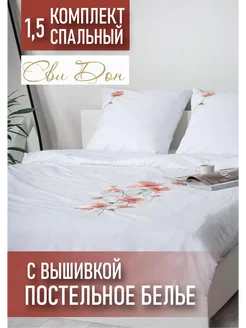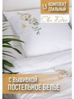 комплект постельное белье 1,5 бязь белое с вышивкой ромашки