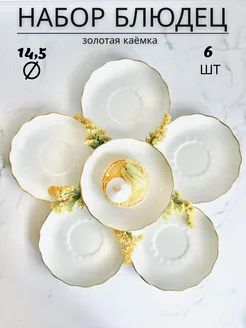 Блюдца чайные белые золотая каёмка фарфор набор 6 шт