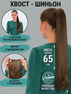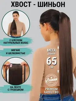 Накладной хвост для волос женский, шиньон на лентах длинный