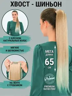 Хвост на резинке накладной шиньон женский длинный