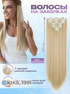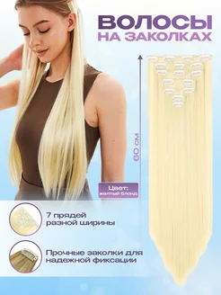 Накладные длинные пряди на заколках блонд