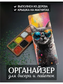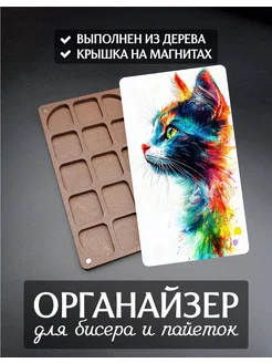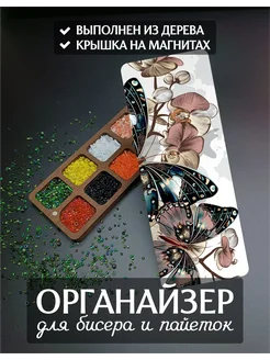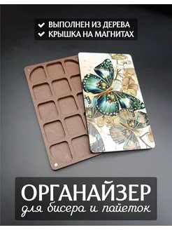 Деревянный органайзер для бисера Бабочки на 15 ячеек