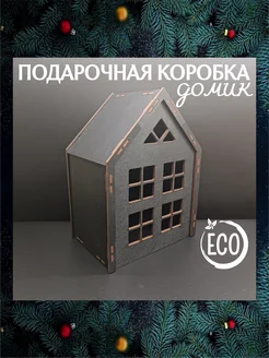 Коробка подарочная черная домик с окошком