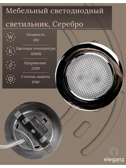 Светильник мебельный 4W 4500К Термопластик, серебро