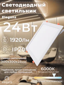 Светильник встраиваемый светодиодный 24Вт металл Кв. 6000К
