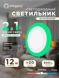 Светильник трехрежимный 12Вт Круг 5000K + Зеленый