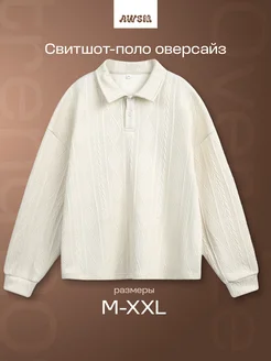 Вязаный свитшот-поло Y2K оверсайз удлинённый бежевый