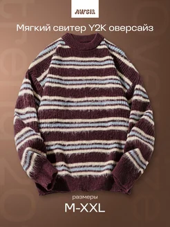 Свитер оверсайз в корейском стиле y2k вязаный длинный теплый
