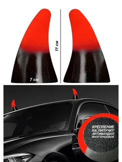 Наклейка на авто рога красные на крышу светящиеся