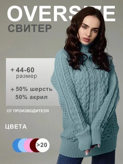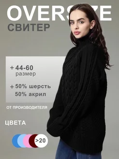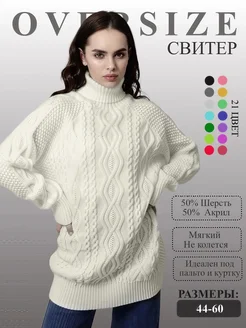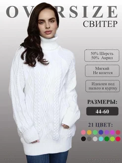 Свитер оверсайз удлиненный шерстяной с высоким горлом