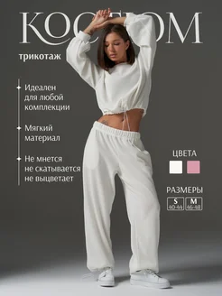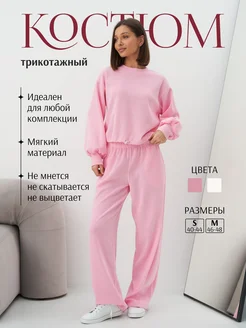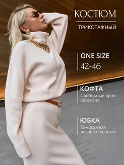 Осенний трикотажный вязаный костюм оверсайз с юбкой