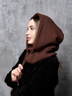 Шапка зимняя вязаная на завязках и снуд