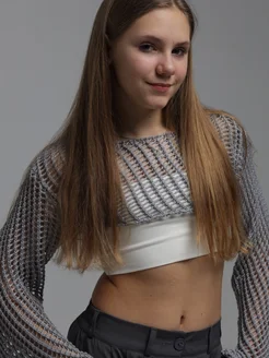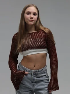 Свитер кроп топ сетка укороченный вязаный с длинным рукавом
