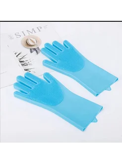 Силиконовые хозяйственные перчатки 3 в 1 бирюзовые
