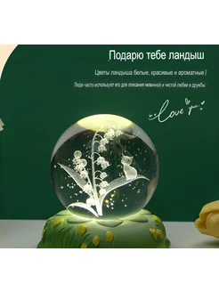 Декоративный интерьерный светильник-ночник "Ландыш и кот"