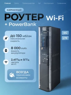 Карманный Роутер Wi-Fi с сим картой PowerBank