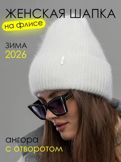 шапка женская зимняя с флисом ангора