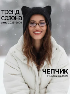 Шапка чепчик с ушками зимняя на флисе