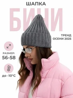 Шапка женская бини с отворотом на осень