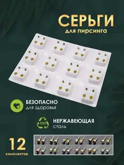 Стерильные серьги для прокола ушей пистолетом 12 пар