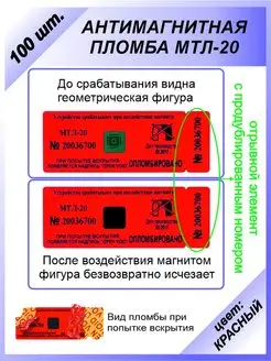 Антимагнитная пломба-наклейка МТЛ-20 (100 шт) для счётчиков