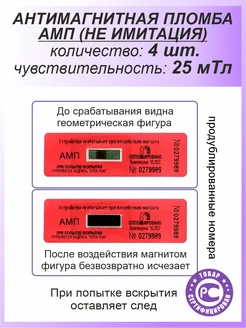 4 шт - антимагнитная пломба наклейка АМП для счётчиков