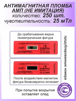 250 шт - антимагнитная пломба наклейка АМП для счётчиков