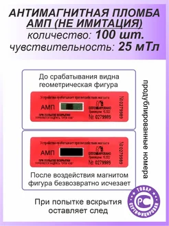 100 шт - антимагнитная пломба наклейка АМП для счётчиков