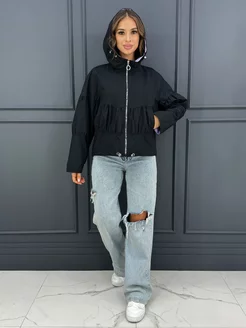 Ветровка весенняя больших размеров короткая черная оверсайз