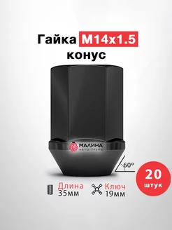 Гайка чёрная колёсная М14x1.5 длина 35мм ключ 19мм конус
