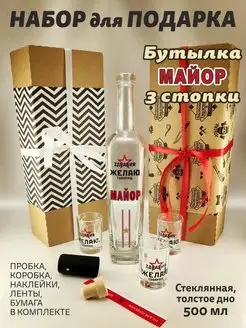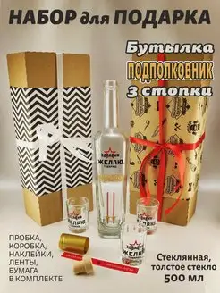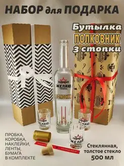 Бутылка для Военного с 3 стопками, Набор для подарка