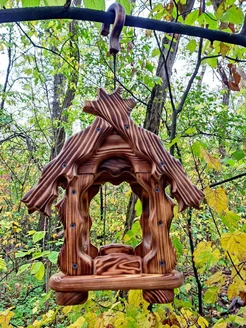 Кормушка для птиц уличная подвесная на дерево ручной работы
