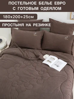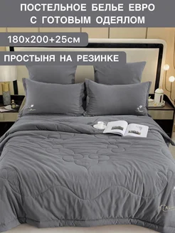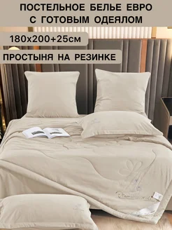 Постельное белье с одеялом, евро, на резинке