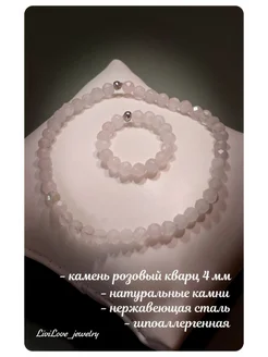 Кольцо и браслет из натурального камня розовый кварц