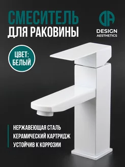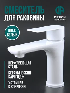 Смеситель для раковины и умывальника, нержавейка,белый