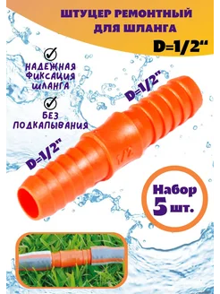 Штуцер ремонтный для шланга, d=1 2", набор 5 шт