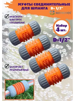 Муфты соединительные для поливочных шлангов D=1 2" 4 шт