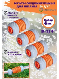 Муфты соединительные для поливочных шлангов D=3 4" 4 шт