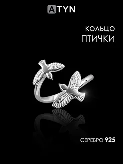 Кольцо серебро Птички