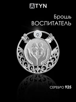 Серебряная брошь воспитателю учителю