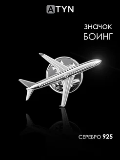 Значок серебро Самолет
