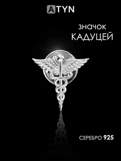 Серебряная Брошь Кадуцей
