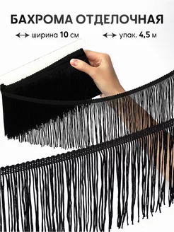 Бахрома для одежды черная 10 см уп.4,5 м танцевальная