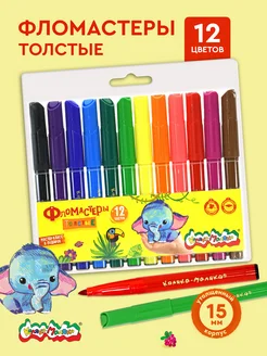 Фломастеры для рисования утолщенные набор 12 цветов детские