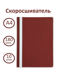 Папка-скоросшиватель А4, бордовая, пластик 180 мкм, 10 шт