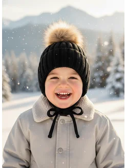 Шапка детская зимняя вязаная с помпоном